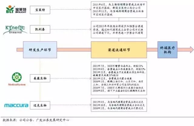 二是原有器械生产型企业通过整合等多种方式,介入到流通渠道领域,进一步延伸渗透至医院内部产品供应及医学诊疗服务环节。