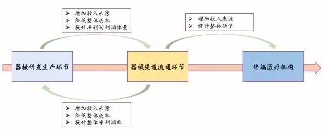 以渠道为核心的器械产业链上下游不同环节之间的相互延伸